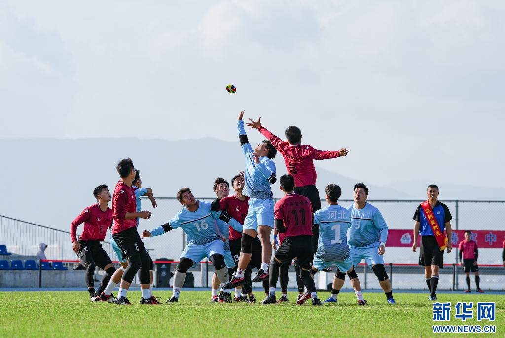 11月25日,广西队选手与河北队选手在比赛中争抢花炮。最终,广西队9比3战胜河北队。