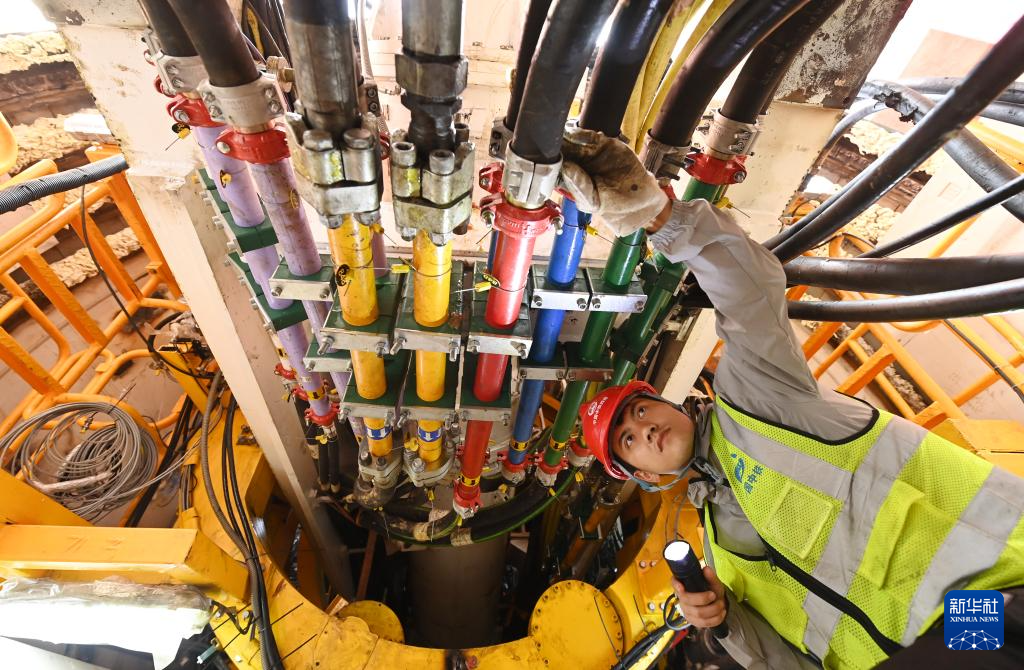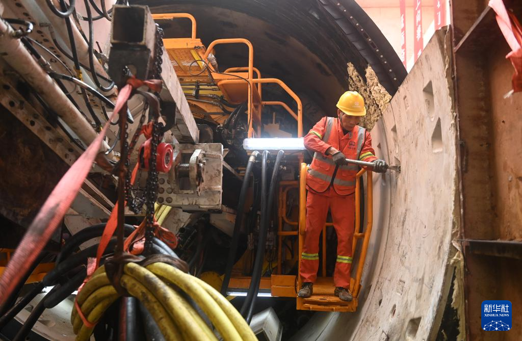 12月2日,在广西南宁市邕江上游二期引水和应急引水工程隧洞工程建设现场,中铁四局工人在对设备进行检查。