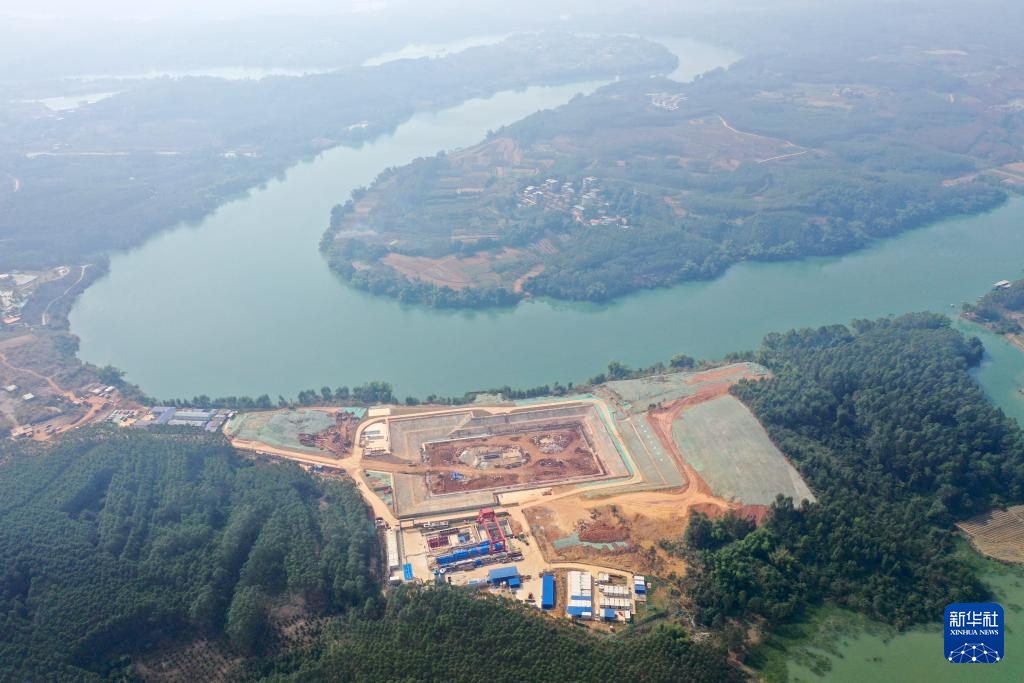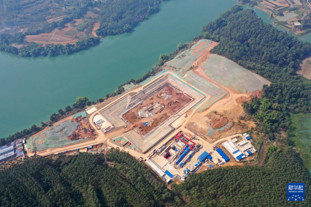 这是广西南宁市邕江上游二期引水和应急引水工程项目建设现场(无人机照片,12月2日摄)。