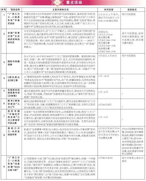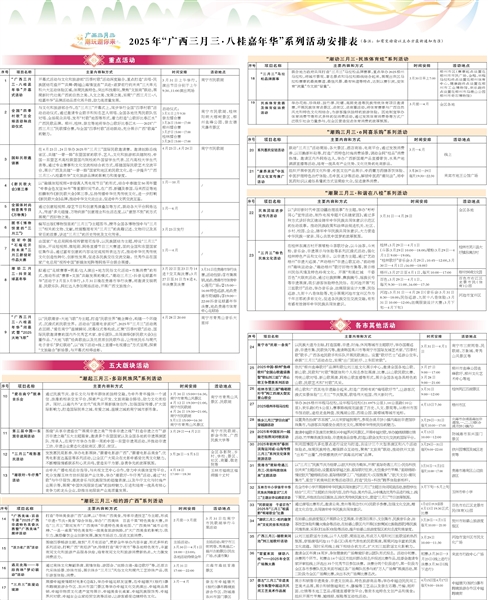 2025年“广西三月三·八桂嘉年华”系列活动安排表 (备注:如有变动请以主办方最新通知为准)