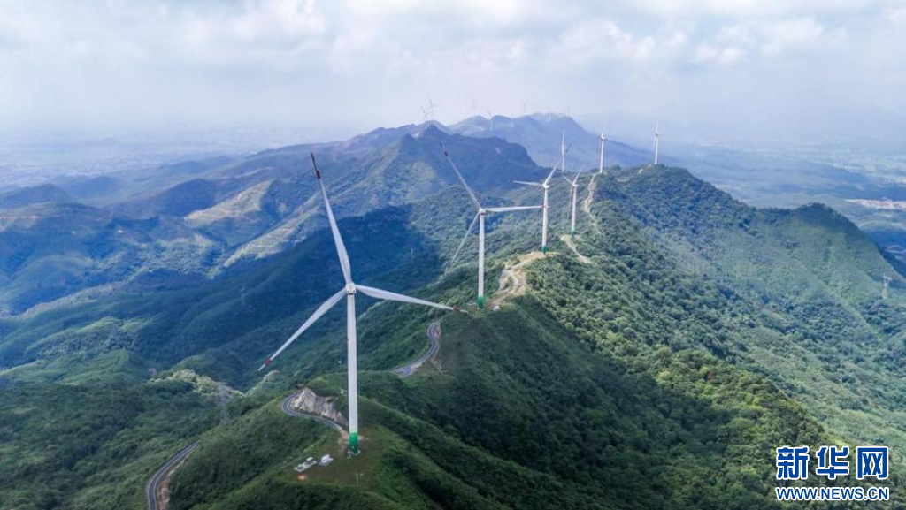 图为广西国能能源发展有限公司建设的贵港百花山风电场风机群