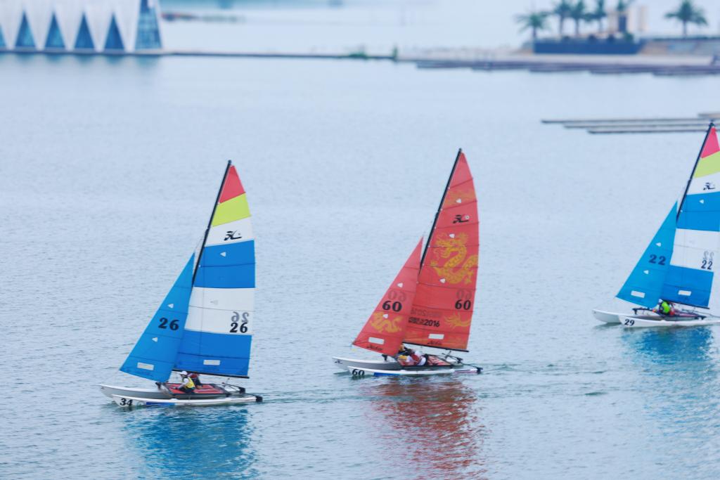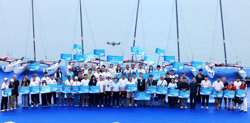 在为期两天的比赛中,32支船队齐聚七星湖,展开激烈角逐。经过多轮场地赛与决赛的较量,最终泰国Thai team队夺得第一名,泰国YRAT队、新西兰Kiwi Charsiu Bun队分获第二、三名,三亚抢风队、德国卢辉队和贵州烘塘帆船队位列第四至六名。