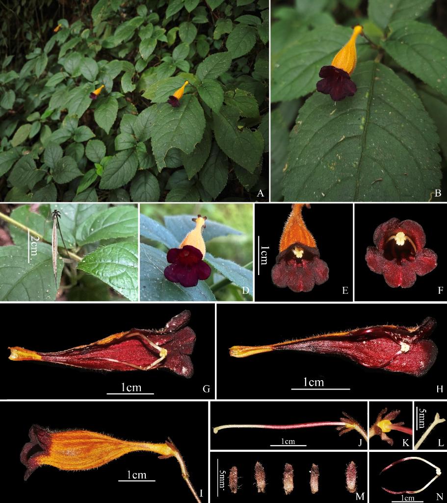 据介绍,该物种主要生长于亚热带常绿阔叶林边缘,因其花冠筒外部呈黄色至棕黄色,且具数条明显的棕黄色条纹,内部为紫红至紫褐色而区别于漏斗苣苔属其他物种。经形态学比较与文献资料考证过后确定为漏斗苣苔属的一个新种。因其模式产地在广东省化州市,故将其命名为“化州漏斗苣苔”。