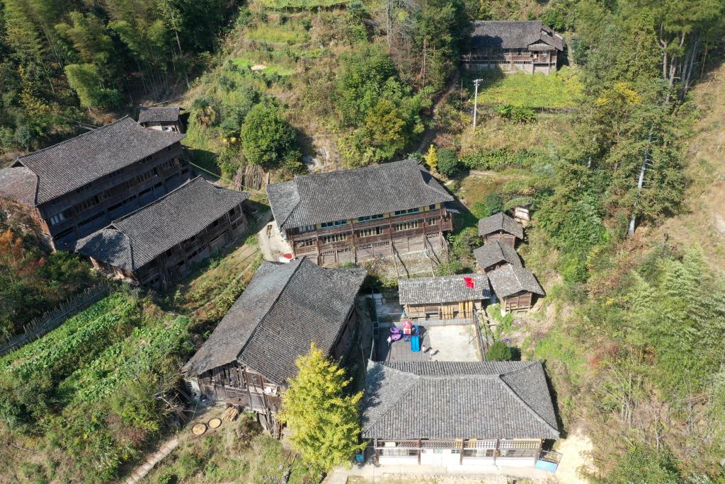 这是广西龙胜各族自治县龙脊镇满田小学所在地(2023年11月29日摄)。国旗在校园里高高飘扬。