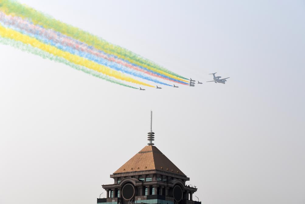2019年10月1日,庆祝中华人民共和国成立70周年大会在北京天安门广场隆重举行。这是领队机梯队。