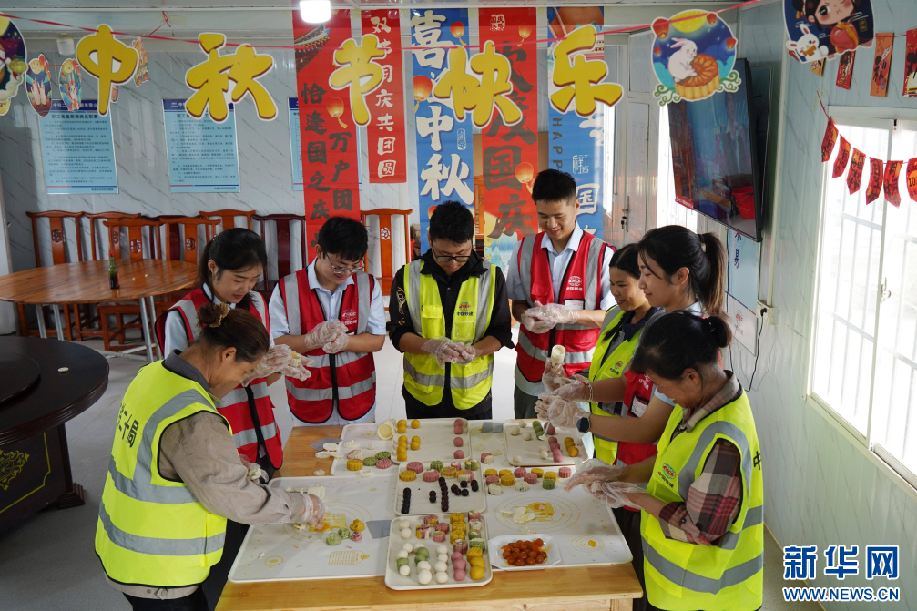 在中秋佳节来临之际,广西南宁轨道科技创新产业园项目工地开展中秋月饼DIY活动,工友们一边亲手制作月饼,一边聊家常,共同感受传统节日的温暖和乐趣。