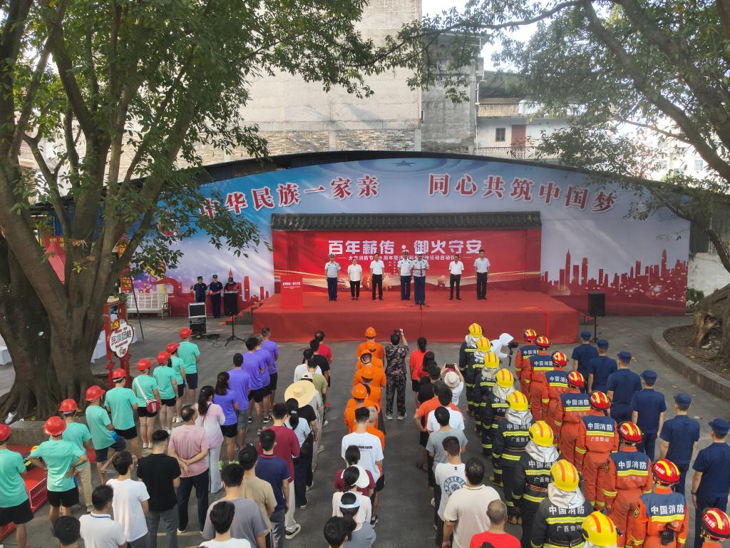 新华网南宁10月13日电(杨文福、何静仪、杨怡中)10月11日,广西贵港市平南县大安镇古建筑群广场热闹非凡,大安消防节189周年暨科普宣传活动在此启幕。数百名干部群众齐聚于此,共赴这场传统与创新交织的消防之约。