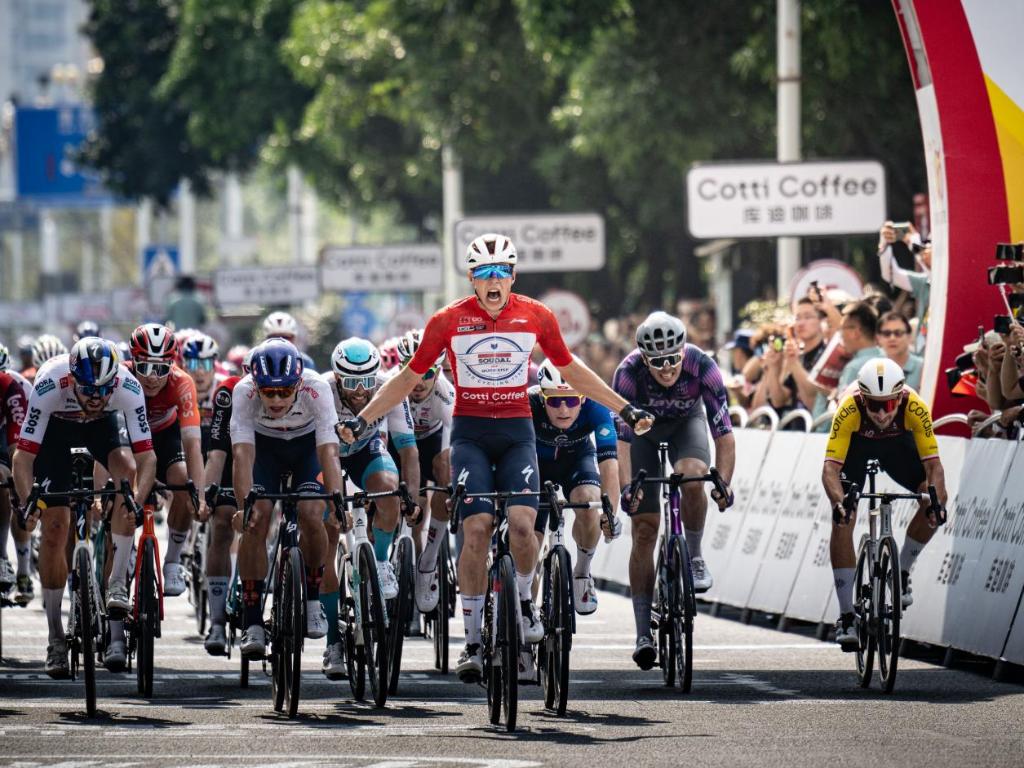 图为第四赛段终点车手冲线瞬间,速的奥快步车队车手保罗·马尼耶(前)实现四连胜。(主办方供图)