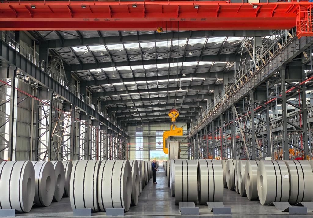 灰色钢架构架起宽敞空间,亮眼的橘色生产线如长蛇列阵,井然有序地高效运转,广西梧州弘毅新材高端不锈钢制品精深加工项目于8月份顺利投产,它生产的不锈钢正是梧州市拓展再生新材料下游产业链的重点项目。