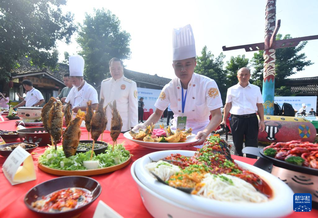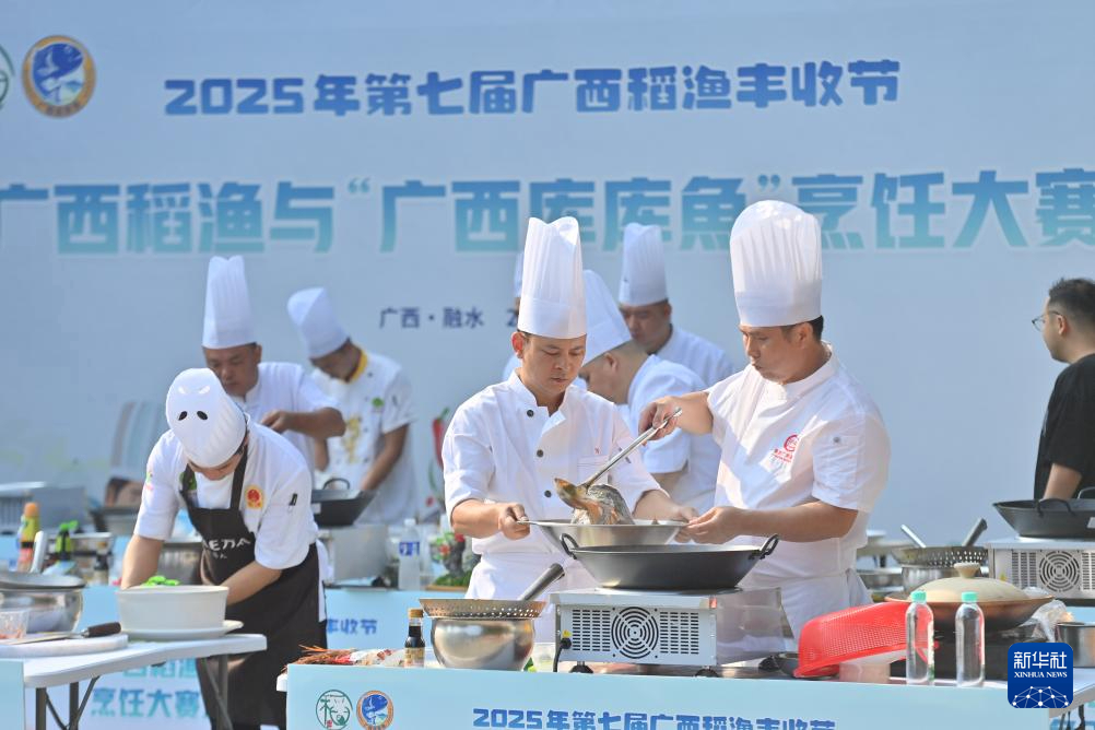 10月18日,在柳州市融水苗族自治县梦呜苗寨,参赛选手在第七届广西稻渔丰收节烹饪大赛中展示厨艺。