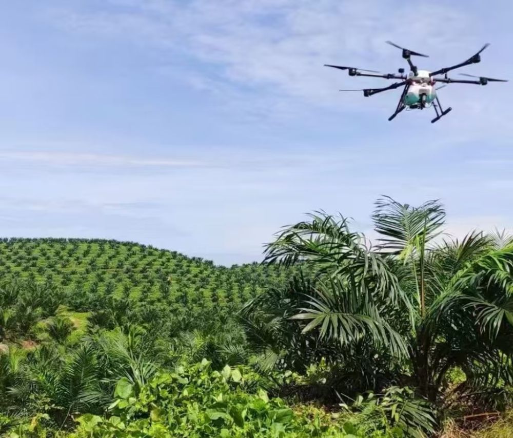 无人机在马来西亚智慧棕榈园开展识别作业(受访者供图)