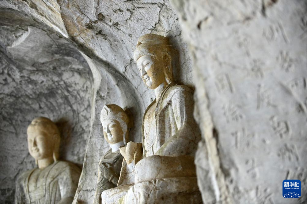 这是10月25日拍摄的广西桂林市叠彩山风洞内的佛像。