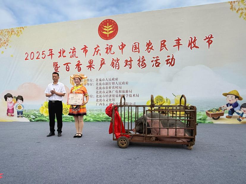 金秋十月,“丰”景如画。10月28日,广西北流市在新圩镇河村举办庆祝中国农民丰收节暨百香果产销对接活动。