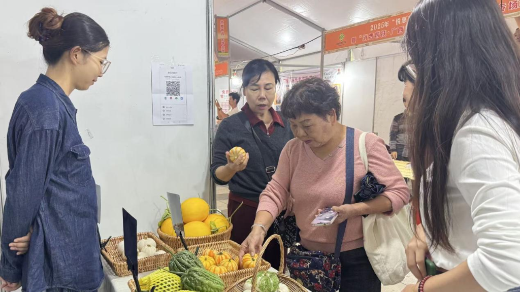 在一家特色农产品展位前,色泽鲜亮、个头饱满的贝贝南瓜吸引不少市民驻足。广西南宁晟发设施农业有限公司经营管理部主管李乾说:“这次大集带来的多是新品种,比如金桔贝贝南瓜、奶油贝贝南瓜口感细腻香甜,不仅可以食用还可以用作DIY装饰,吸引不少市民朋友来尝鲜。”除了贝贝南瓜,大顶苦瓜也因其苦味适中回甘快深受消费者喜爱。
