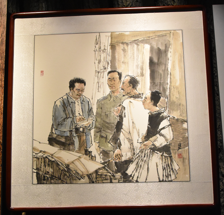 2020年,贵州省毕节市赫章县海雀村的村史展览,有一副画描绘了1985年新华社贵州分社记者刘子富前来为民鼓呼的采访情景。