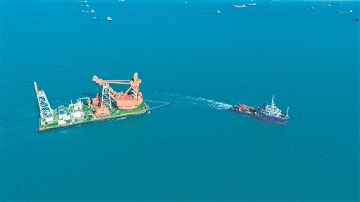 据介绍,作为北部湾国际门户港建设的核心工程、西部陆海新通道的关键节点项目,防城港港30万吨级进港航道扩建工程建成后,将满足30万吨级巨轮趁潮单向通航要求。(记者苑长军 通讯员林振宇、朱宝柱 文/图)