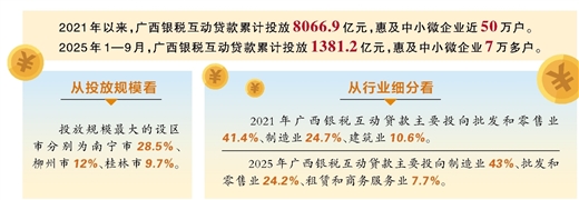 联昌公司并非个例。“十四五”期间,广西各级税务部门联合金融监管机构、银行业金融机构持续深化银税互动合作,提升服务质效,推动银税互动贷款受惠企业由纳税信用A级和B级企业向M级企业扩围,更好地帮助企业将纳税信用转化为融资信用,构建“以税促信、以信换贷、以贷扶企”的良性循环。数据显示,2021年以来,全区银税互动贷款累计投放8066.9亿元,惠及中小微企业近50万户。