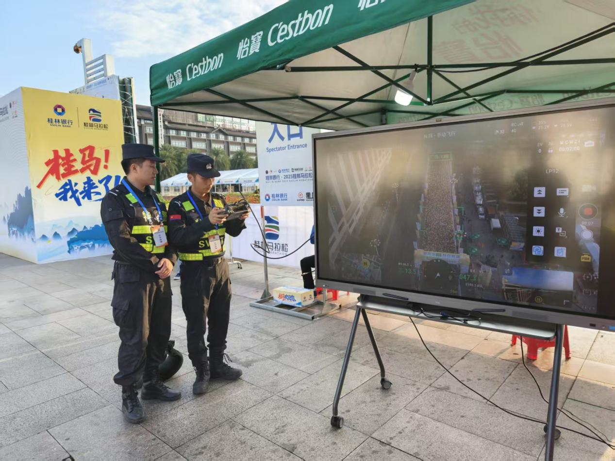 桂林警方依托无人机捕捉赛道关键节点、人流状况等画面。赵帅 摄