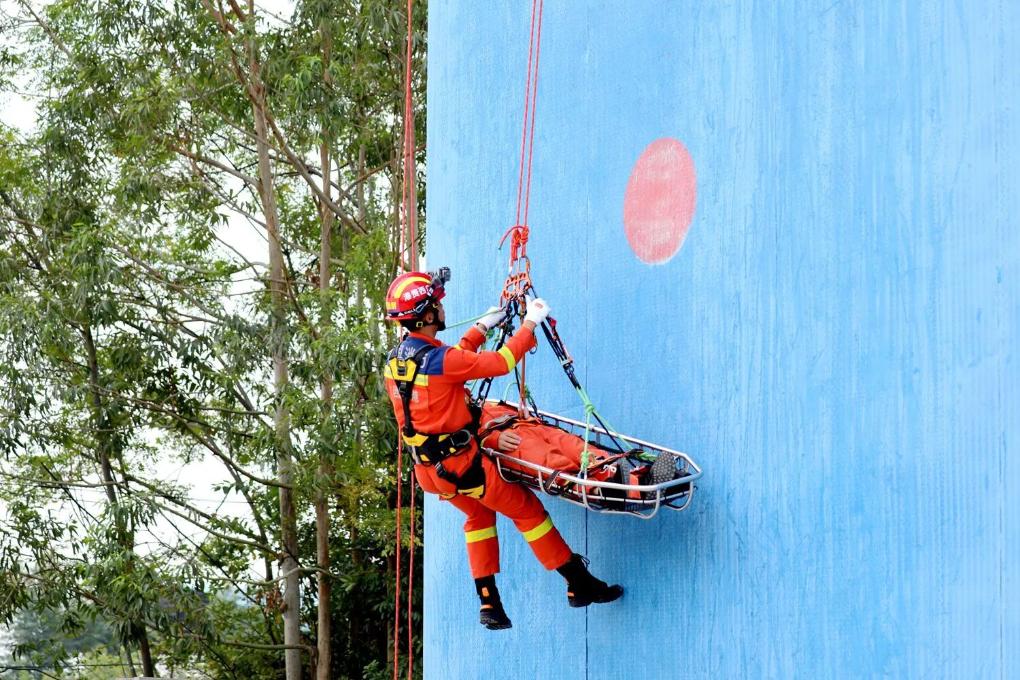 本次比武紧密结合消防救援队伍实战需要,重点检验队伍整体作战能力,设置了理论考试、预案推演、100米负重、居民自建房破拆内攻救人操、复杂山岳地形搜救转运操、车辆事故处置救援操、正压式空气呼吸器组装测试操等项目。多维度的竞技项目既是对体能、技能练兵成效的大考核,也是对灭火救援实战能力的检验。