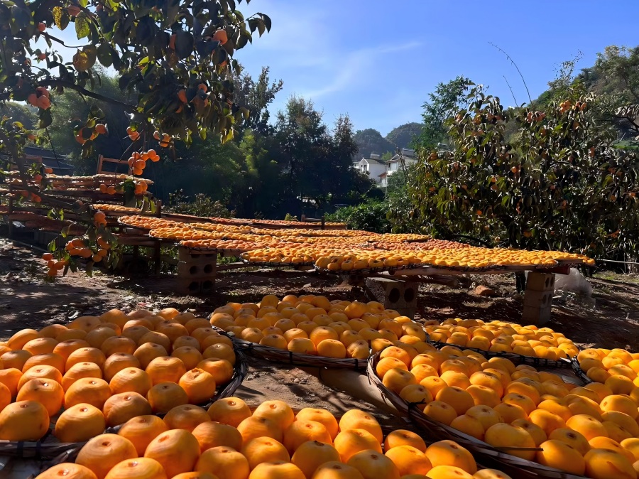 在标准化生产方面,恭城已建成10万亩绿色食品原料标准化生产基地和24个标准化生产示范点。通过推广生态种植技术,优质果品率提升5%,亩均增收超过1200元。目前,恭城开发出柿酒、柿醋、柿单宁含片等高附加值产品30多种,并建成国内首条柿子精深加工智能生产线,年加工柿饼能力近5万吨。