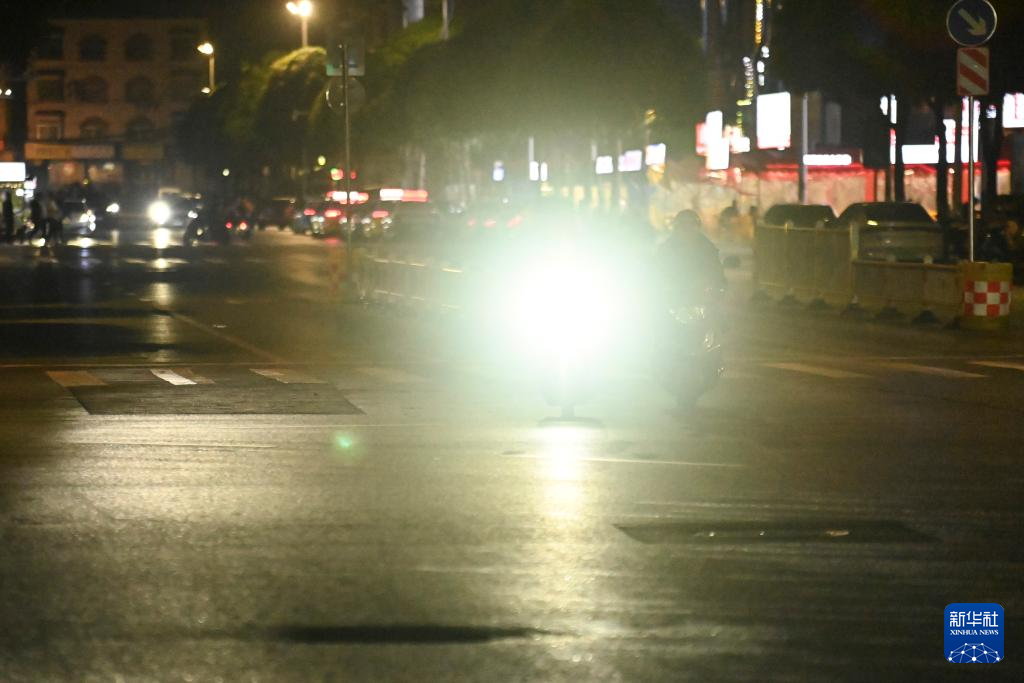 11月24日在广西百色市街头拍摄的“超亮”电动自行车车灯。
