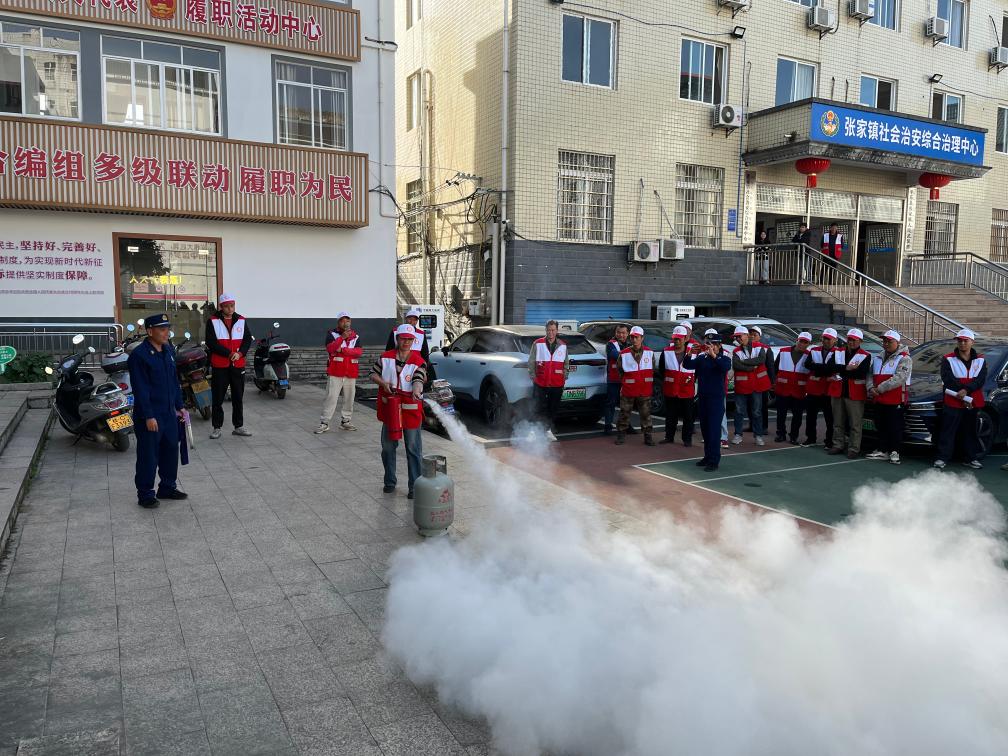在广西平乐县张家镇,乡镇应急干部及社区响应骨干在进行灭火实操训练。