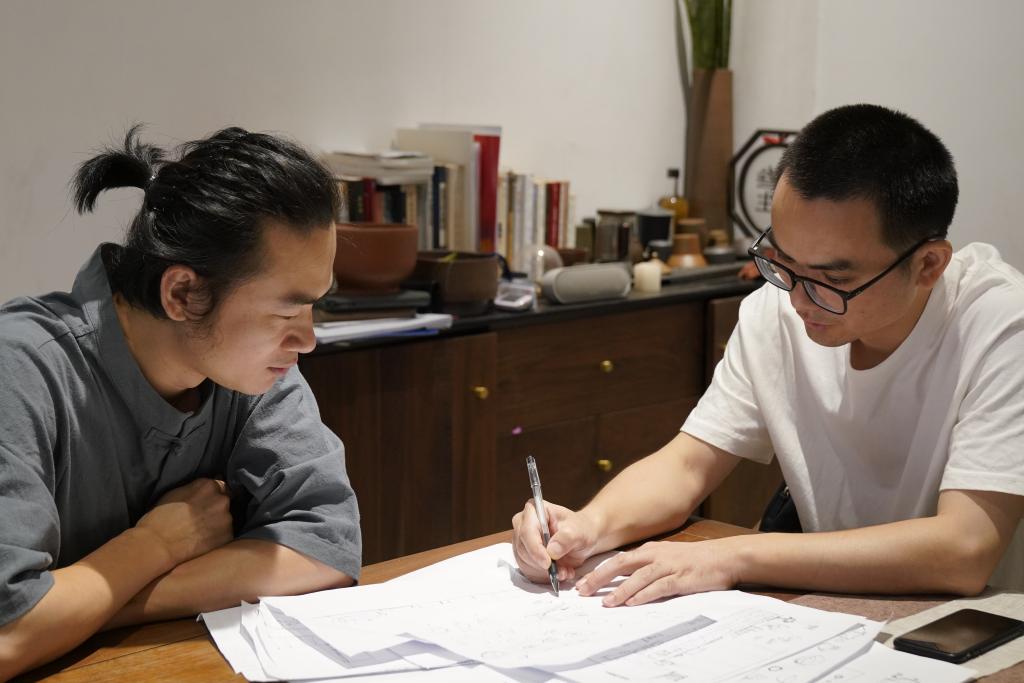 周三平与陈海生在进行创意策划。新华社记者赵欢 摄