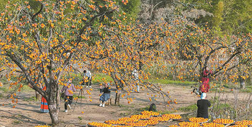 作为“中国月柿之乡”,恭城瑶族自治县已有1500多年的柿子栽培历史。柿子主产区的莲花镇红岩村是国家4A级旅游景区,该村以月柿为核心,结合自然景观与民族文化,集中打造“喜柿园”“遇见好柿”“我的柿界”等数十个柿子主题观赏打卡点,成为热门旅游目的地。