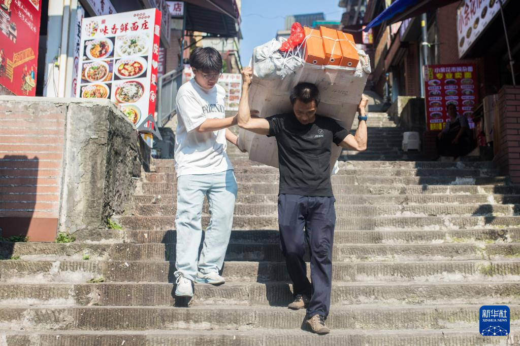 高考结束后挑着沉甸甸的行囊走在回家路上