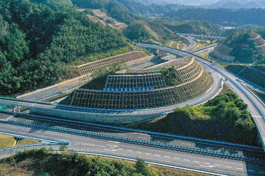作为施工难度较大的山区高速项目,苍昭高速全线桥隧比高达57%。建设团队通过应用多项新技术,成功攻克复杂地质难题;同时积极推动苍昭高速与信梧高速、包茂高速等多条干线互联互通,进一步织密区域路网,构建了西部陆海新通道对接粤港澳大湾区的重要走廊。