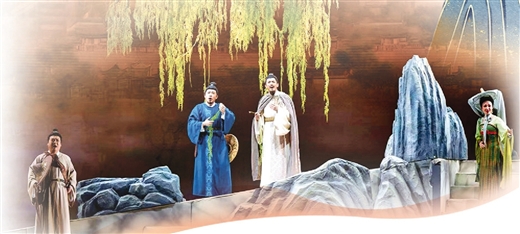 民族歌剧《柳柳州》中王良(左3)饰演柳宗元。(资料图片)