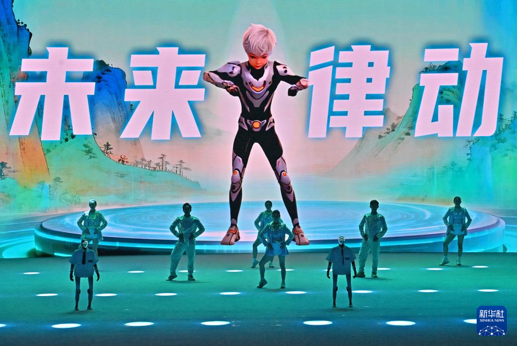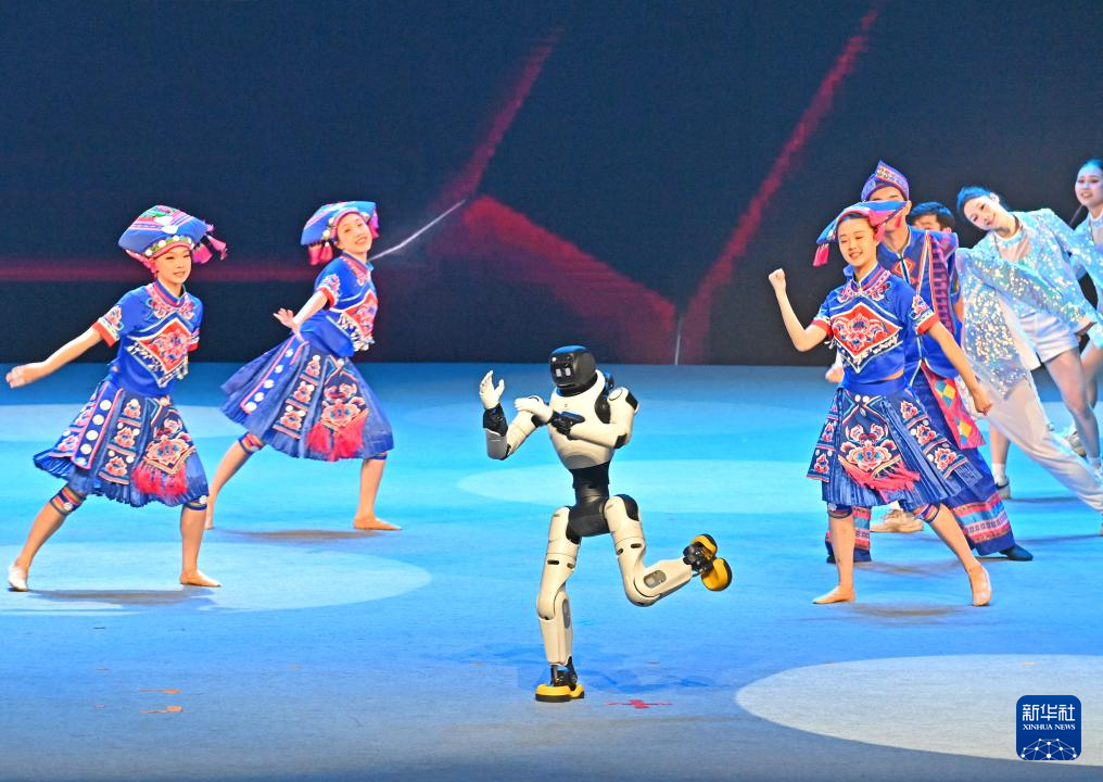 机器人、数字人和演员一起表演舞蹈(12月26日摄)。