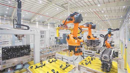 位于越南顺化市的玉柴越南工厂,其全自动化生产线正全速运转。该厂配备全球领先、高自动化的发动机装配生产线。(玉柴供图)