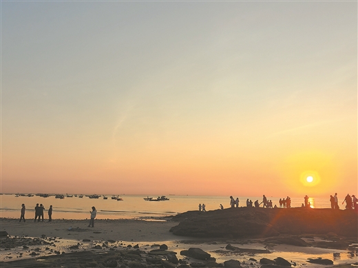 游客观赏涠洲岛的夕阳。记者何兴强/摄