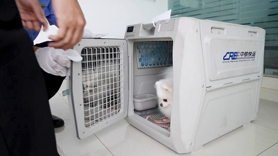 工作人员正在办理宠物托运业务手续。程睿哲 摄