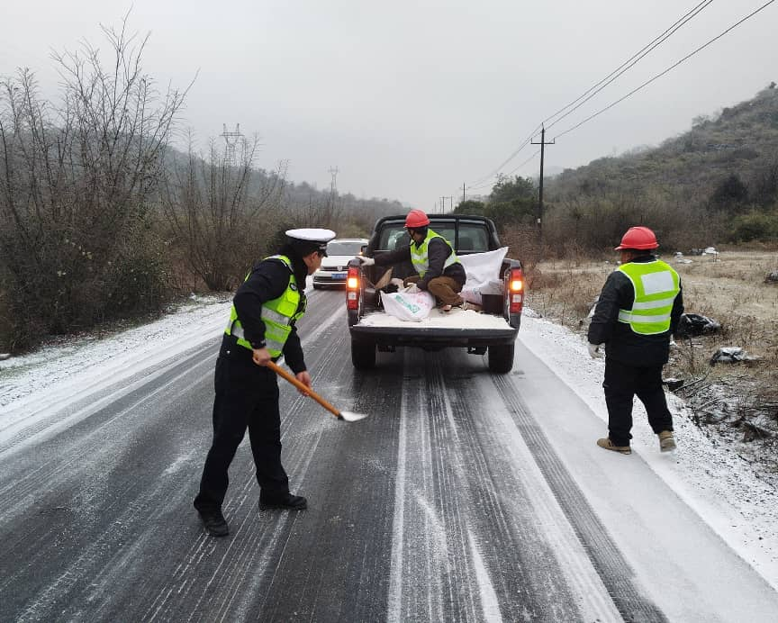 近日,受持续强冷空气影响,桂林市中北部及高寒山区出现雨夹雪、冻雨天气。资源隘门界、全州天湖、兴安摩天岭等地山区道路出现积雪结冰,给通行带来挑战。面对低温雨雪天气考验,桂林市公安机关迅速启动应急预案,科学部署,全力投入抗冰雪、保畅通、护平安工作。