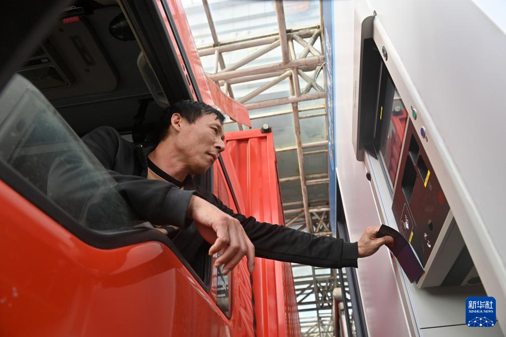1月27日,一名司机在广西爱店口岸通过“快捷通”通关系统核验证件准备通关。