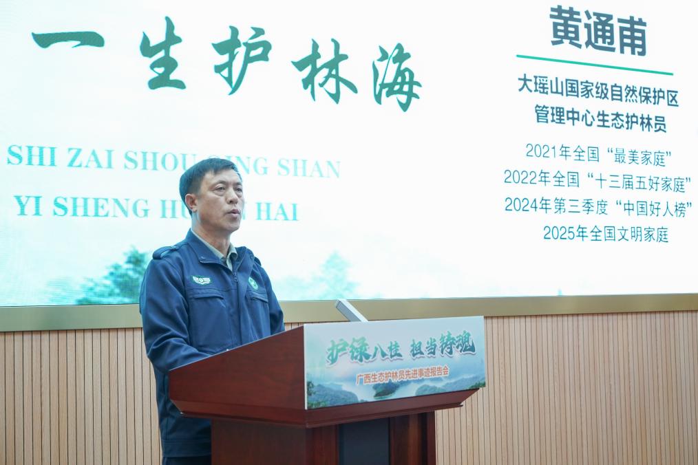 生态护林员黄通甫在报告会上发言。李宇安 摄