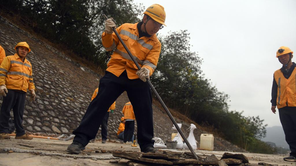 新华社南宁2月12日电(记者林凡诗、王浡)清晨,天光未亮,山中雾气正浓,记者一行驱车沿山区蜿蜒道路前行,又至渡口转乘轮渡,终于来到中国铁路南宁局集团有限公司百色工务段八渡路桥车间。在这里,车间青工班的桥隧工们已经完成作业前准备工作,准备开展护坡修补作业。