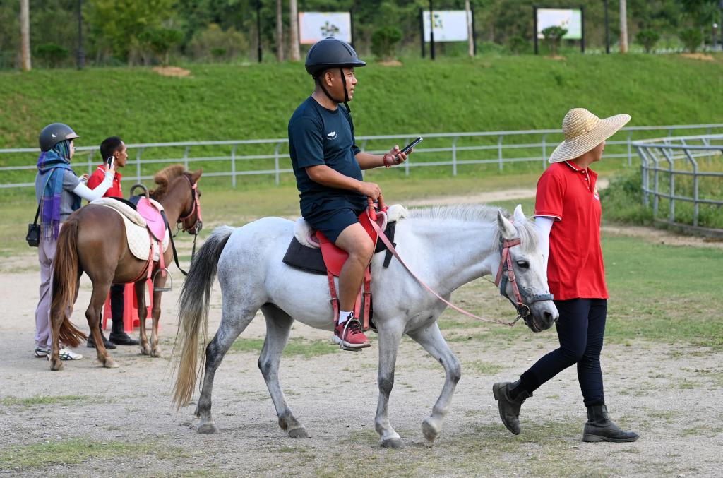 德保矮马王国景区负责人农祥介绍,景区构建集动物互动、亲子游乐、教育研学、休闲度假于一体的综合型文旅业态,“设有矮马博物馆、萌宠部落、主题餐饮等特色板块,并结合马术科普、骑乘体验、矮马护理等课程内容,推动‘研学+文旅’深度融合。”