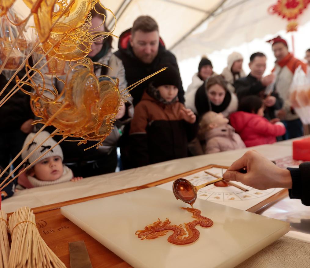 台上,中国非遗表演惊艳全球。多瑙河畔,川剧变脸和“吐火”技艺让匈牙利民众叹为观止;在芬兰赫尔辛基库洛岛中学,学生们在专业指导下体验皮影戏表演;在埃及开罗“春节市集”,融合中阿元素的剪纸和书法艺术展示吸引当地民众驻足。