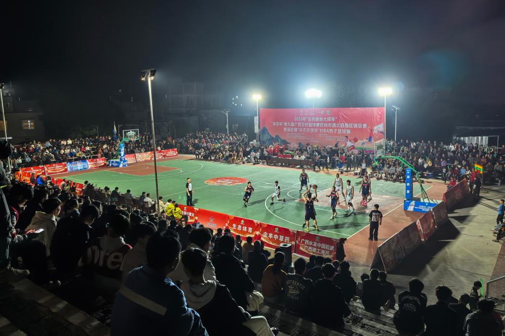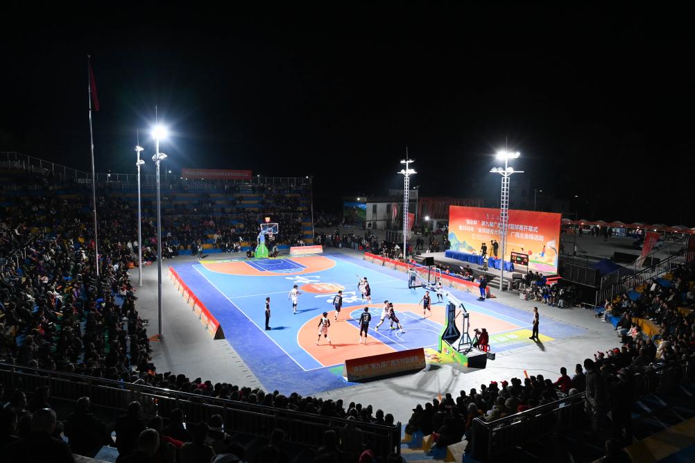 ↑第九届广西万村篮球赛武宣县县级赛决赛现场。