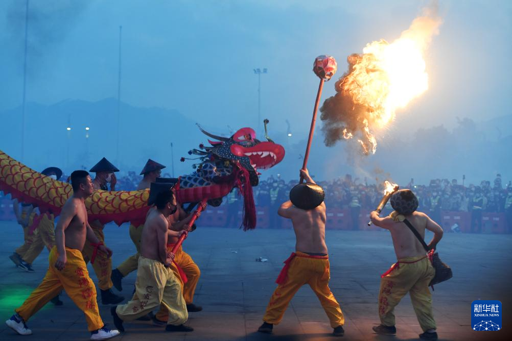 广西宾阳:舞炮龙 庆新春-新华网