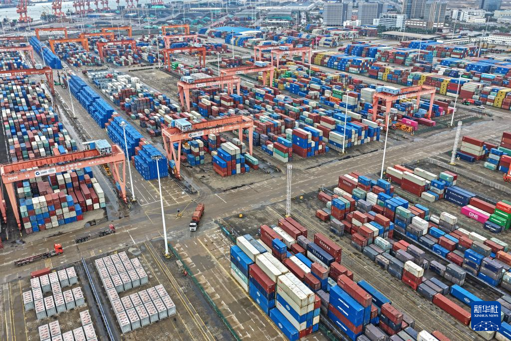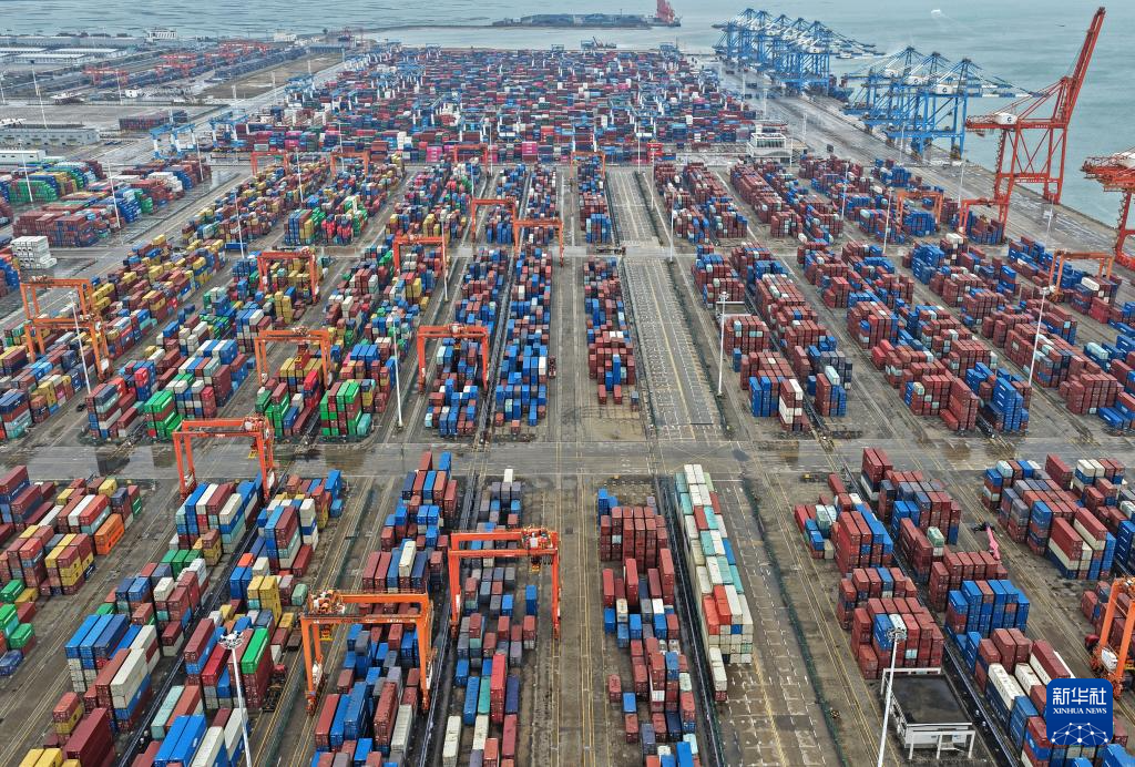 时下,广西北部湾港钦州港区码头桥吊、龙门吊等自动化设备有序运转,车辆来往穿梭,港口货运呈现一派繁忙景象。