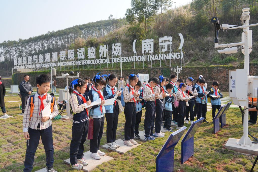 新华网南宁3月16日电(记者范超)3月13日,在世界气象日来临之际,南宁市滨湖路小学30余名学生走进南宁国家综合气象观测专项试验外场,开展“探气象奥秘 护生态家园”主题实践活动。