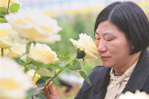 “看到它,我就想起妹妹……”黄爱娟小心地托住一朵花,闭上眼,鼻尖凑近花瓣。