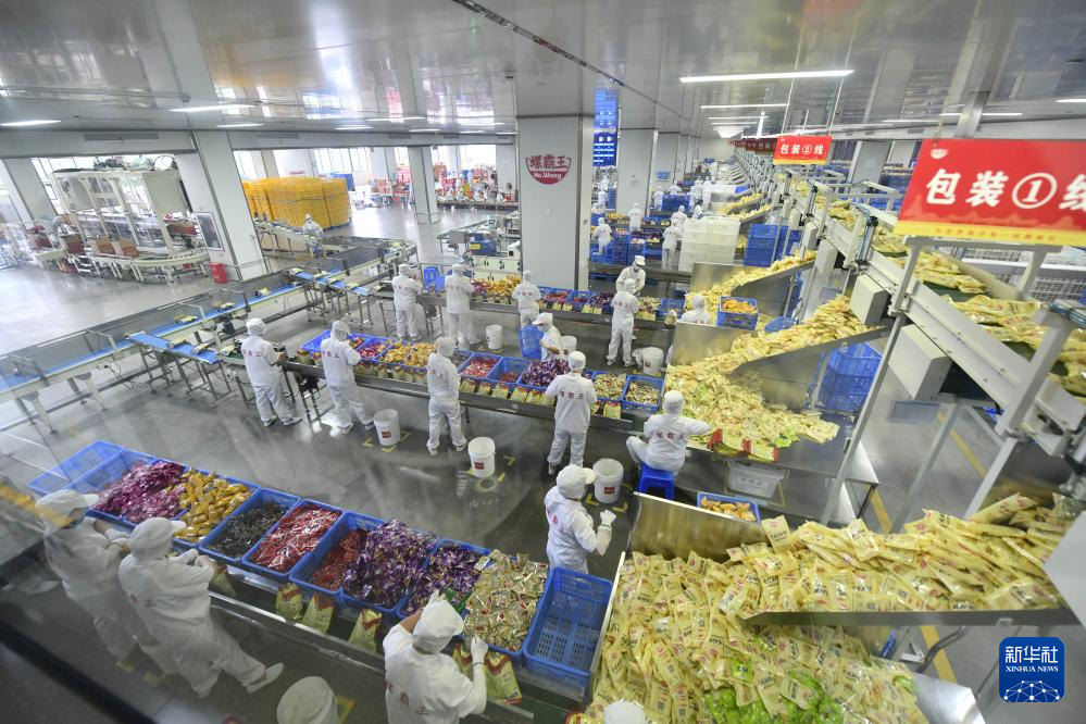 在广西螺霸王食品科技有限公司生产车间,工人在包装产品(2025年9月9日摄)。