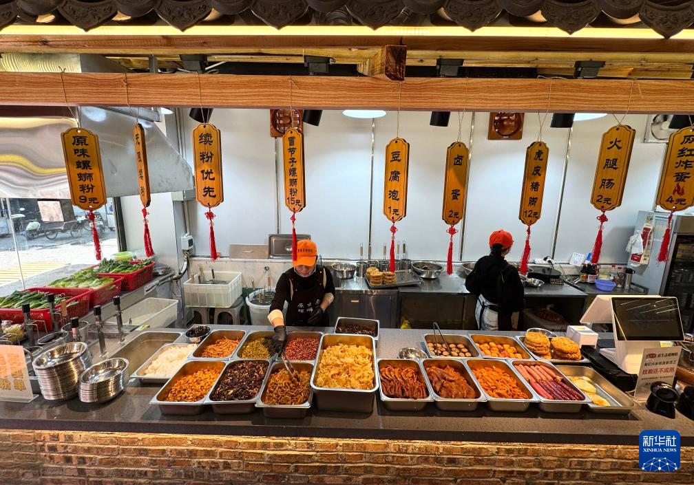在广西柳州市青云民生市场一家螺蛳粉店,工作人员在准备煮螺蛳粉(2026年3月11日摄)。