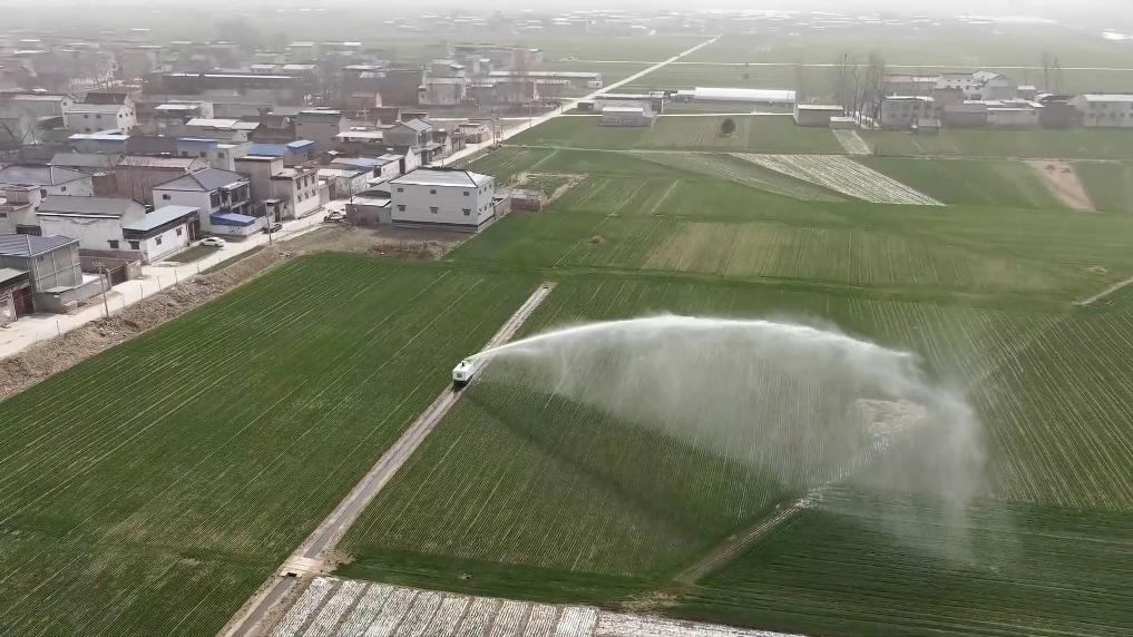 河南各地通过智能化设备和技术的运用,让春管更智慧、更高效。在商丘市睢县种粮大户刘士龙的麦田里,智能灌溉机器人穿梭田间。
