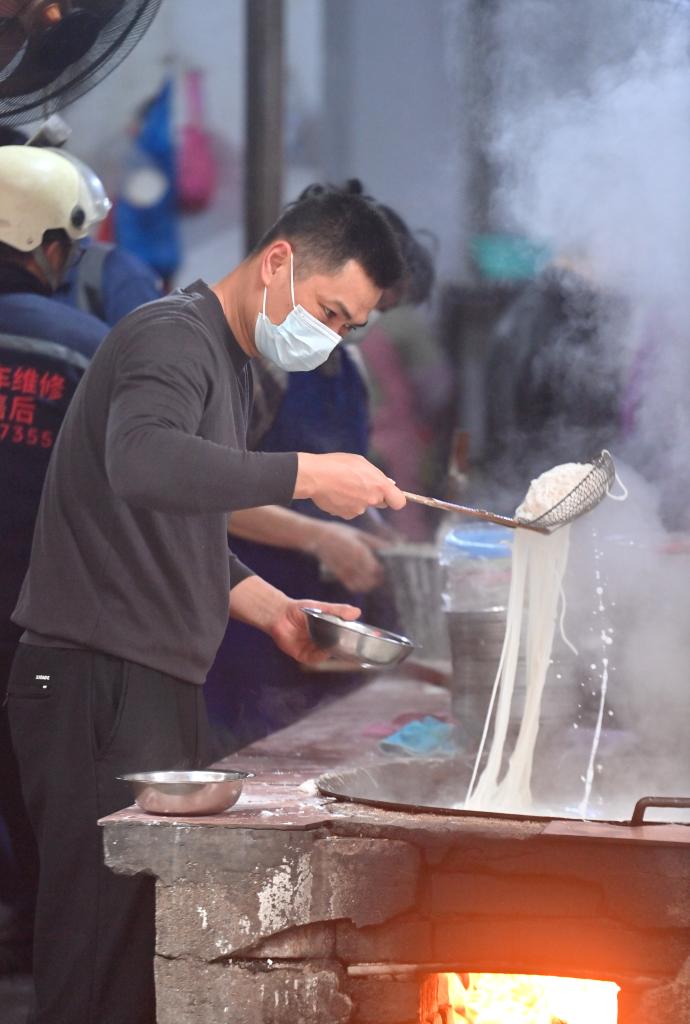 2012年,长安滤粉制作技艺被列入广西壮族自治区级非物质文化遗产代表性项目名录。如今,随着当地文旅融合产业的发展和传统美食文化的振兴,越来越多的游客慕名前来感受这碗“非遗米粉”浓浓的烟火气。